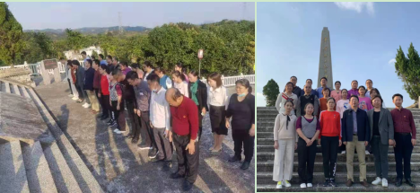 在革命烈士纪念碑前,全体党员深切缅怀革命先烈。