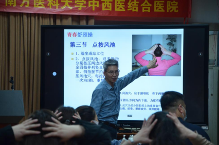 此次科普义诊活动吸引了60余民邮政职工参与,现场骨伤科汪青春教授就办公室人群应该如何预防颈椎病为大家作了简明扼要、生动形象的讲解,并现场教大家做颈椎保健操,让大家进一步掌握预防颈椎病的方法,倡导健康积极的生活方式。