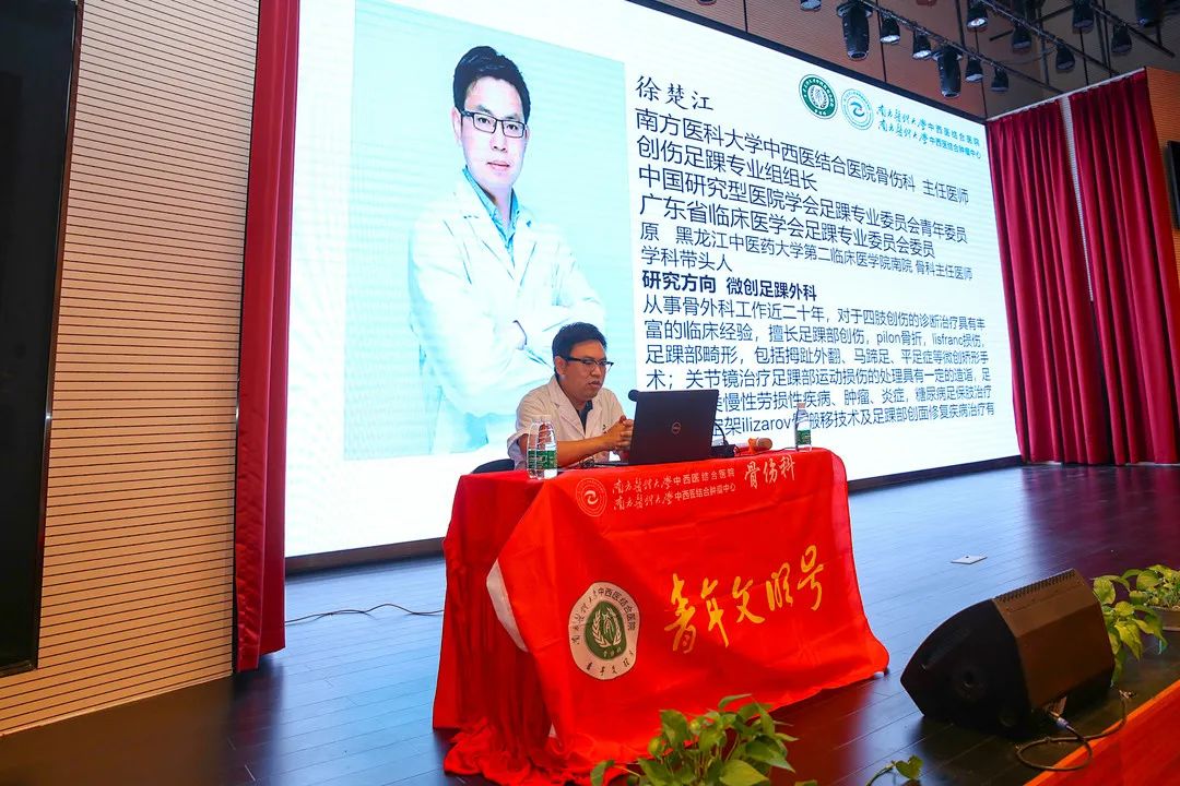 ▲南方医科大学中西医结合医院骨伤科徐楚江作《膝骨关节炎的中西医结合阶梯治疗》专题授课;