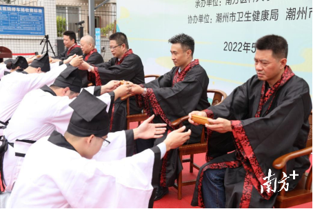 活动上,南方医科大学中西医结合医院、潮州市中医医院共同举行了规培协同单位签约挂牌仪式、师承拜师仪式、《中医内科学 病症方药简表》赠书仪式。