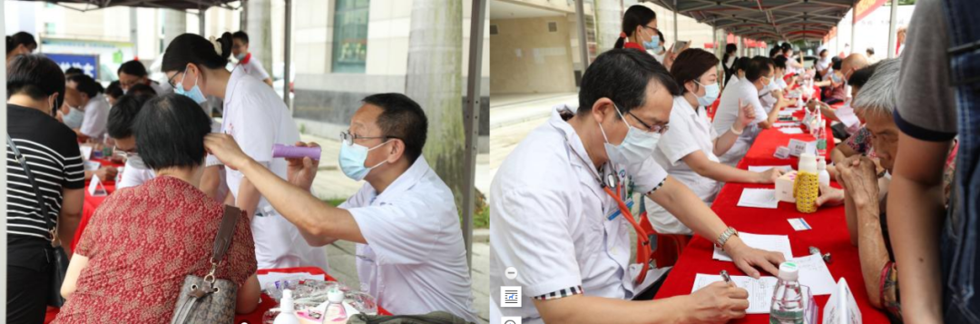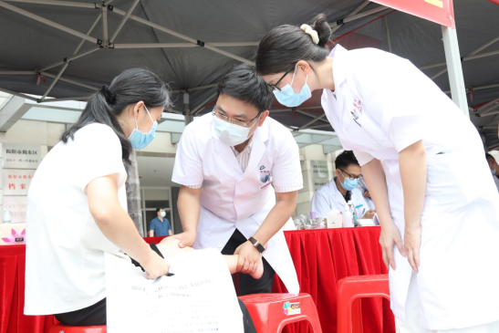 仪式结束后,在揭东人民广场老干部活动中心门口,南方医科大学中西医结合医院联合揭东中医院举行大型义诊活动,治未病中心、肾病科、心血管科、肿瘤科、骨伤科、呼吸科/胸部肿瘤内科、皮肤科、泌尿外科、胸外科、风湿病科、妇科、腹部外科、耳鼻喉科、护理部等17位专家为群众健康把脉,活动现场还为市民提供耳穴刮痧、艾灸等中医特色护理服务和免费测血糖血压等服务。