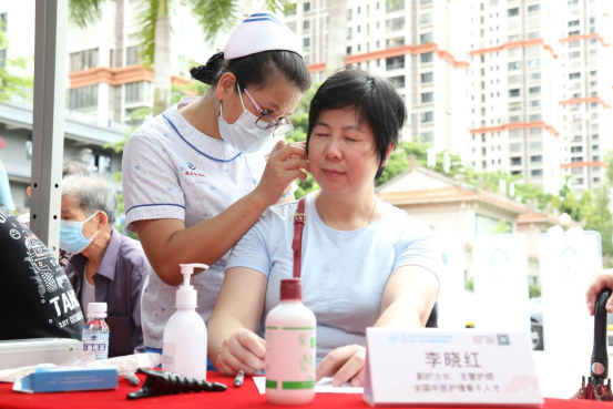 李晓红为市民进行耳穴压豆