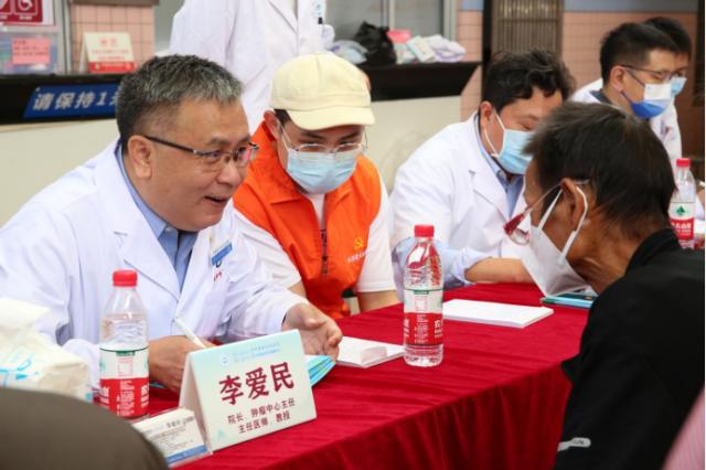 义诊现场 ,一位癌症晚期的阿叔找到南方医科大学中西医结合医院院长李爱民,自述了病情,目前正在吃的化疗药物一个月要花费1.3万元。李爱民详细了解情况后告诉阿叔:一是可以更换同等效果价格更低的药物;二是可用药物减轻疲劳、改善食欲;三是建议他尽快更换引流管。阿叔非常感谢李爱民教授,他说自己感觉压力也小了一些。