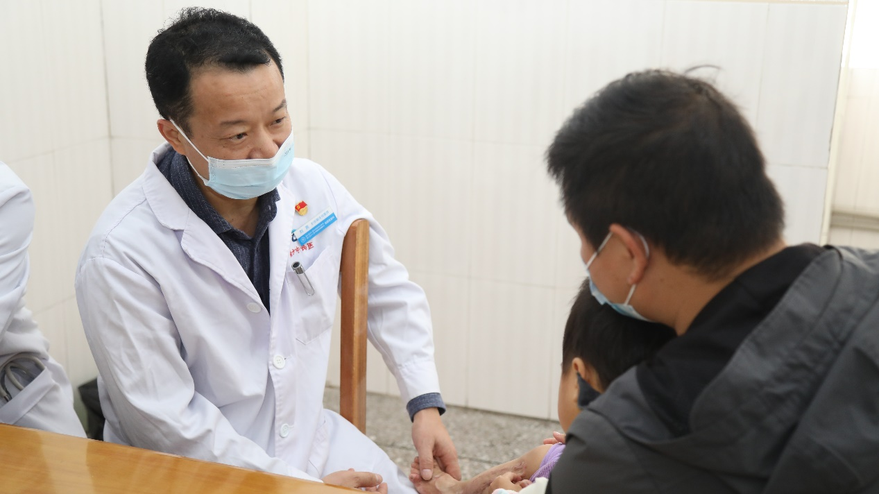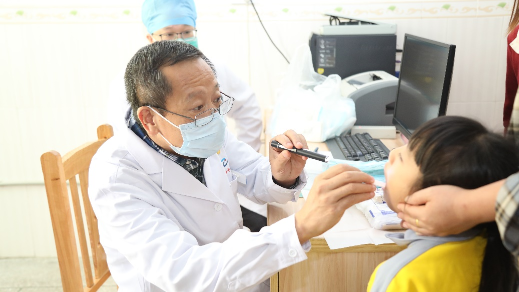 耳鼻咽喉科负责人王荣华给小患者做检查
