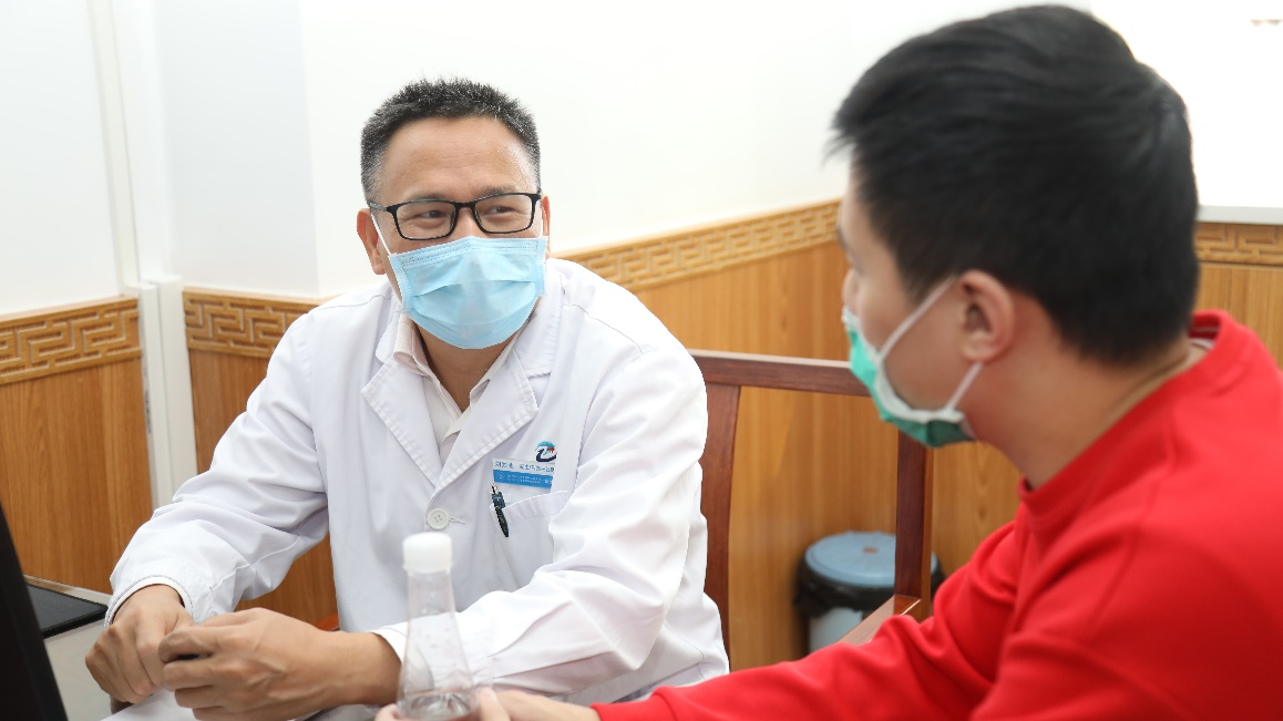 皮肤中心负责人兼创面修复科主任刘亮接诊患者
