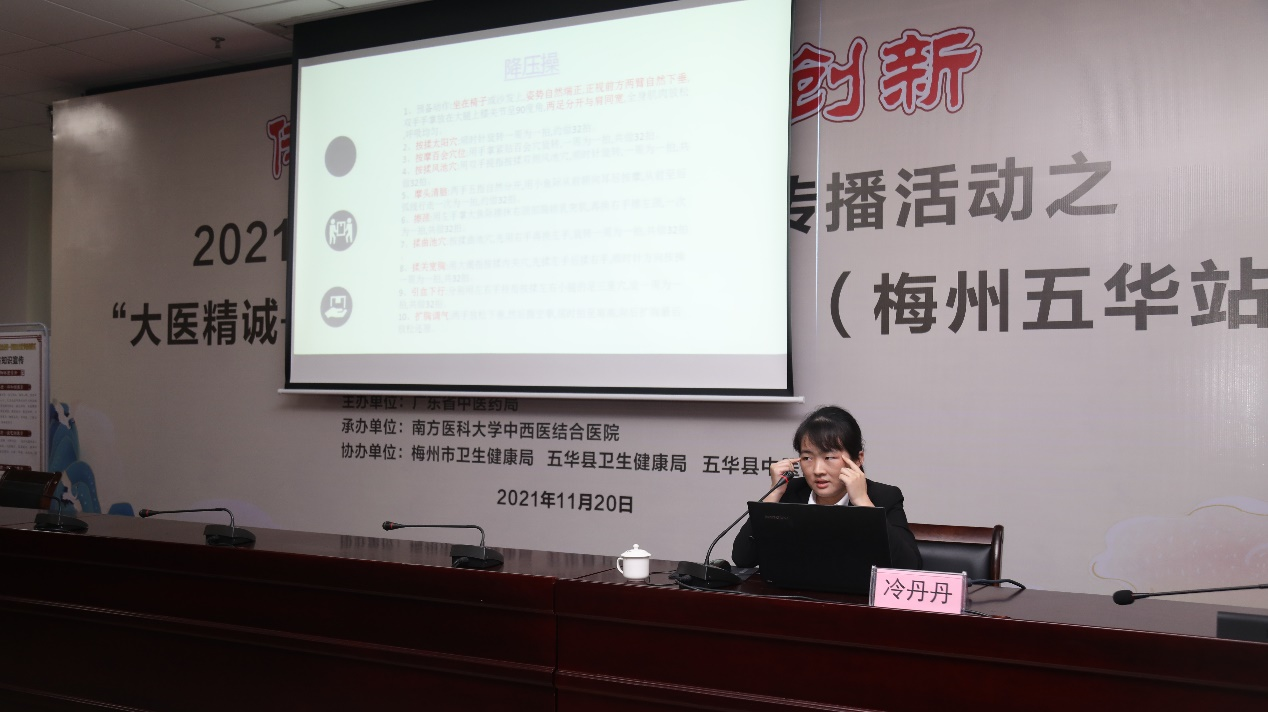 心血管病科护理单元护师冷丹丹作《高血压的中医护理》授课,并作“降压操”示范