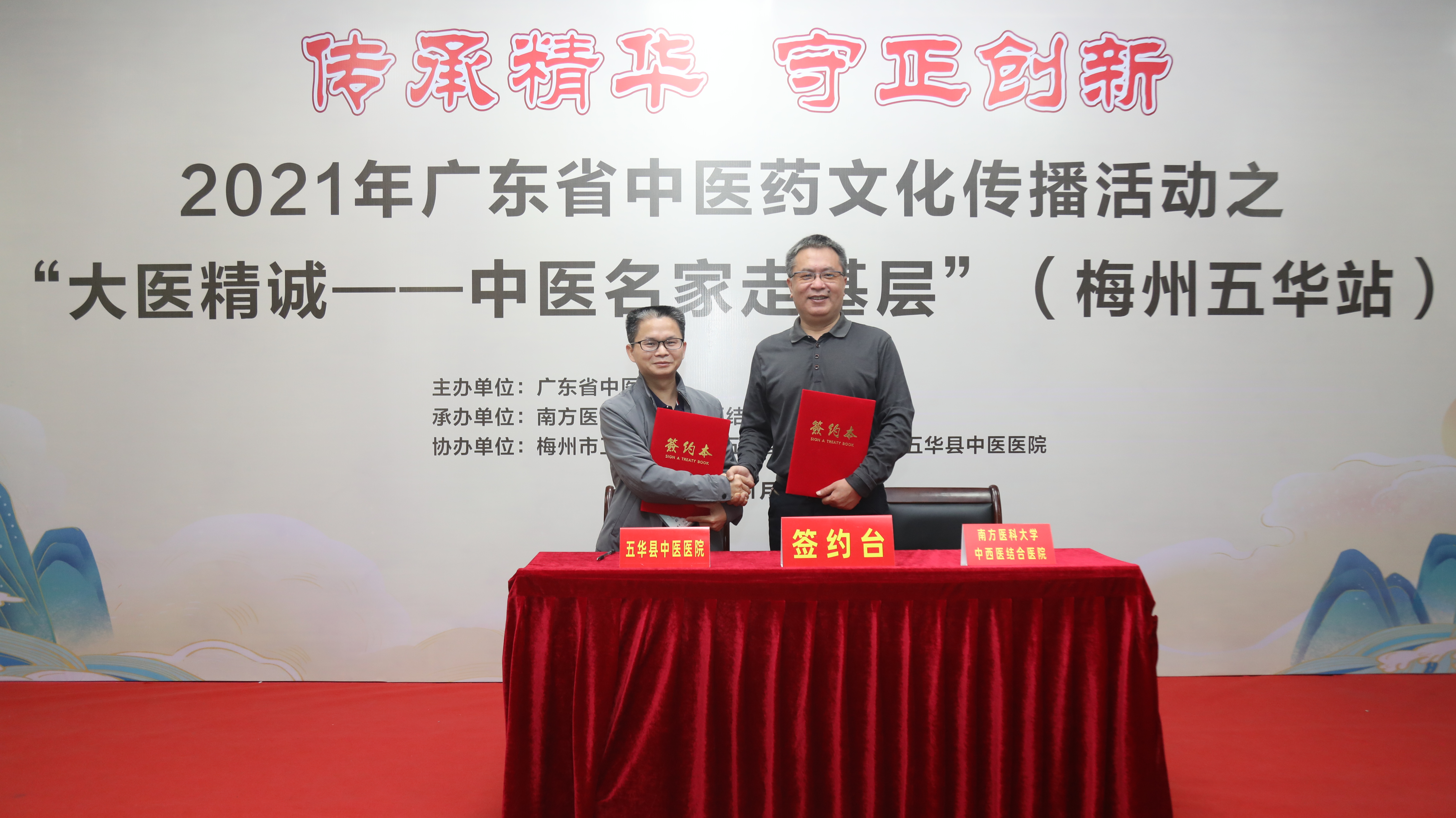 为加强中医药人才培养和专科建设,在本次活动中,南方医科大学中西医结合医院与五华县中医医院共建肿瘤科与妇科专科联盟,南方医科大学中西医结合医院院长李爱民与五华县中医医院院长张学山举行专科联盟签约及揭牌仪式,标志着两院肿瘤科与妇科专科联盟正式建立。
