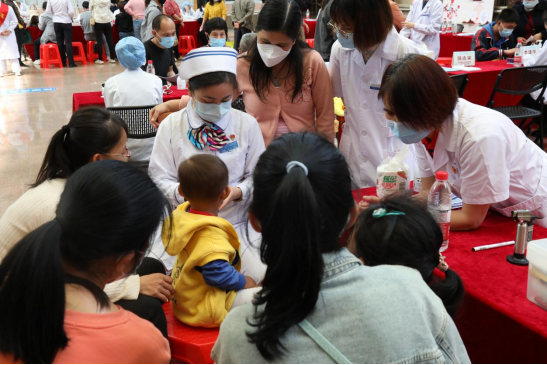 在义诊现场的另一侧,全国中医护理骨干人才,南方医科大学中西医结合医院中医特色护理组组长黄波一到义诊现场就被云浮市中医院的护士们团团围住,学习她耳穴刮痧等特色中医理疗技术。一群可爱的小朋友也跟着家长过来想要体验小儿推拿。刘女士说:“中医确实神奇,我学到了护士长的手法,我的小孩肠胃不是很好,回去之后我也可以给我的小孩做做简单的推拿了。”