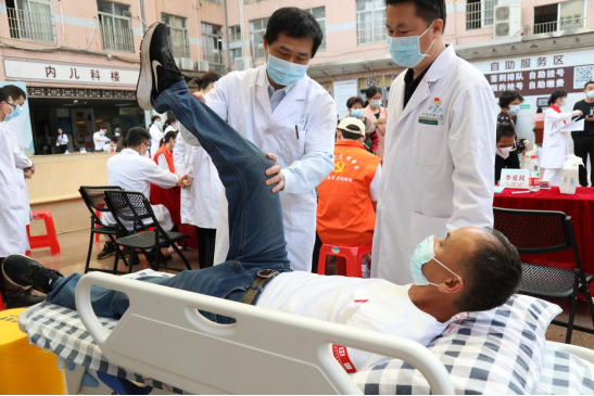 南方医科大学中西医结合医院神经外科主任陈陆馗教授为腿麻患者做检查