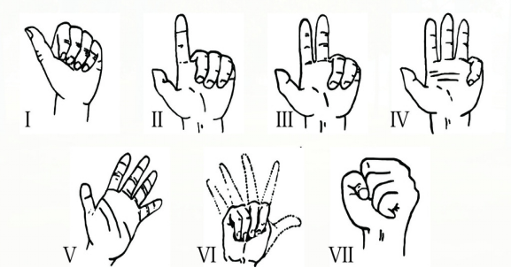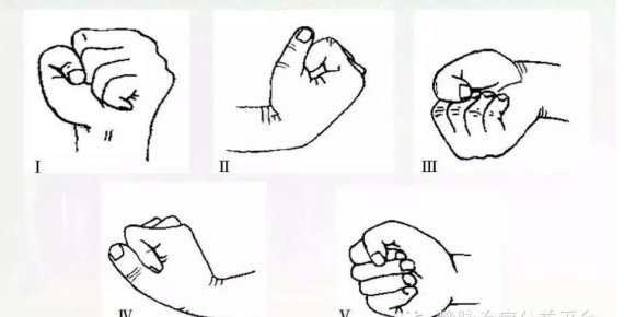 五指依次伸展运动,待全部伸展后用力握拳,双侧手掌交替练习。