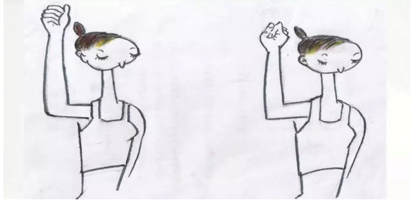 手臂上前抬起,前臂收回,手部抓握,每次连续握2秒。促进肘关节运动,促进血液循环,预防肘关节僵硬及疼痛。