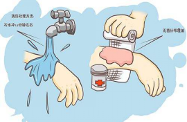 多由火焰、热液(水、汤、油等)、蒸汽所引起的组织损害,轻度烧烫伤,可以将烧烫伤部位用自来水轻轻冲洗半个小时到一个小时左右,或在冷水中浸泡15分钟左右,还可以考虑冷敷, 时间以受伤部位不再感到疼痛为止。不要随意用物料涂搽,以免导致伤势恶化。受伤部位出现的水疱不要擅自刺破,以免造成感染;严重的烧伤或烫伤,须尽快送医院救治。