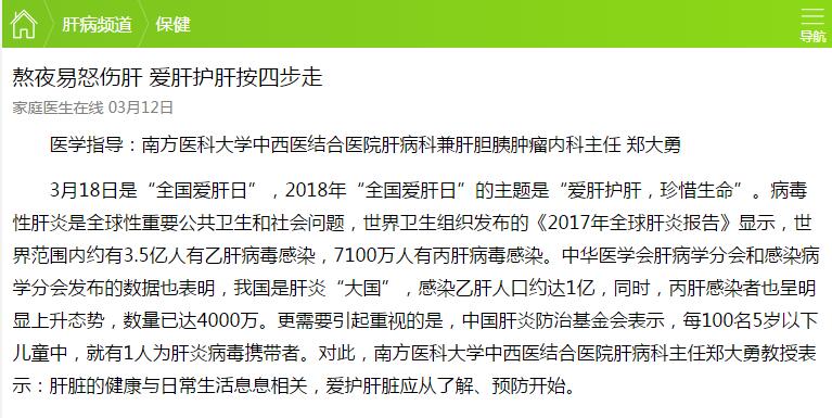 医学指导:南方医科大学中西医结合医院肝病科兼肝胆胰肿瘤内科主任 郑大勇