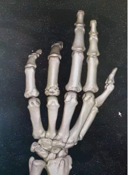 1月7日,3天后来医院复查,门诊挂了个骨伤科主任号。医生拍了个CT发现,骨折移位明显,遂马上安排黄阿姨住院,准备手术切开钢板螺钉内固定治疗。黄阿姨本就惧怕手术,何况是小小的手指骨折,还要做手术,正为要做手术发愁。
