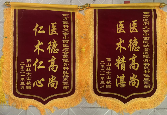 3月17日,医院行政楼收到一个来自佛山的神秘包裹,打来一看原来是两面金灿灿的锦旗和一封手写的感谢信,信中所言满是对我院骨伤科医护团队的感激之情。
