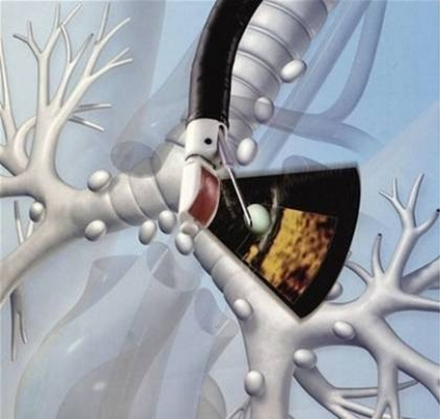 EBUS-TBNA进行淋巴结活检示意图