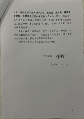 感谢信将成为医院全体医护人员继续前行的动力。我们会牢牢记住这份信任和支持,不断提升医疗服务质量和水平,给每一位患者带去更好的治疗和关爱,为更多患者的健康保驾护航!