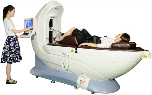 一是仿失重,利用物理技术,使患者下肢和骨盆失去地球85%的引力,使椎旁肌肉不再痉挛抵抗,原来患者在传统牵引中150N力下就痛苦不堪,可现在由于仿失重的作用,在600N力的施力下,患者可安然入睡,无任何不适感觉。