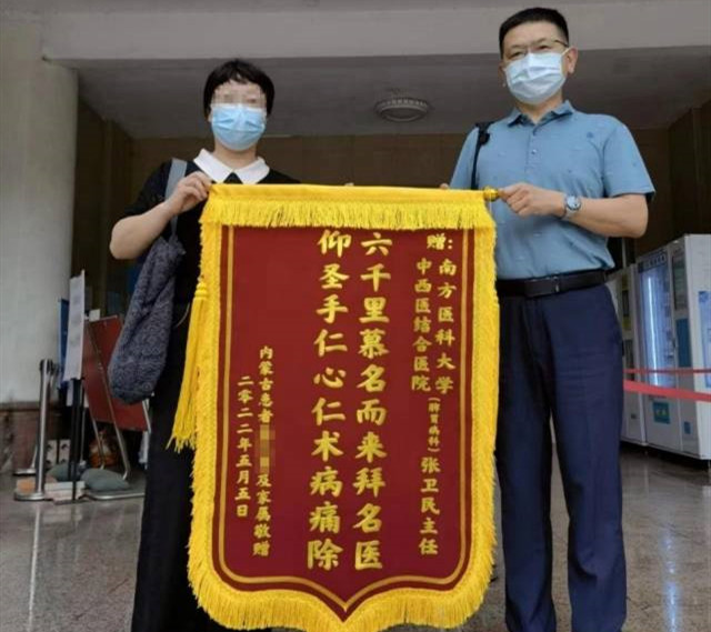 “六千里慕名而来拜名医,仰圣手仁心仁术病痛除”。近日,来自内蒙古的杨女士(化姓)将一幅锦旗送到了南方医科大学中西医结合医院脾胃病科(消化内科)张卫民主任手上。