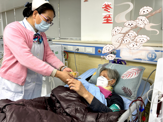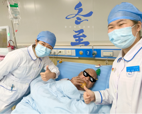 经聂晓莉主任策划,在李晓红护士长的带领下,血透护理组长钟凤银与专科护士吴伟健带着美味的饺子、热腾腾的汤圆、小面包慰问冬至当日的血液透析患者,为血透患者在这严寒冬日送去温暖、传递信心和给予美好的祝福。