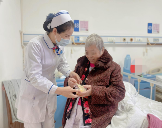 “李阿姨,今天是冬至,我们为您送上一份汤圆,祝您冬至快乐,天冷注意保暖,早日康复!”在送上汤圆的同时,蔡小慧护士长同时也不忘嘱咐患者们注意温差,防寒保暖。