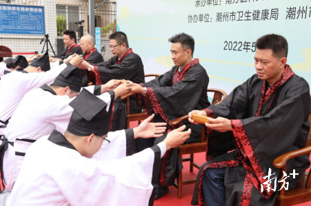 随后,南方医科大学中西医结合医院、潮州市中医医院共同举行了规培协同单位签约挂牌仪式、中医师承导师拜师仪式、《中医内科学 病症方药简表》赠书仪式。