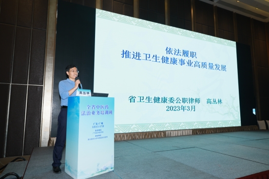 南方医科大学马克思主义学院院长任映红教授、广东省卫生健康委公职律师高丛林、南方医科大学中西医结合医院院长李爱民教授、广东省卫生监督所医疗机构监督科李霞科长分别围绕习近平法治思想,中医药行政复议和应诉实务、“一法一条例”推动中医医院高质量发展、中医药监督执法案例分析等进行专题授课。
