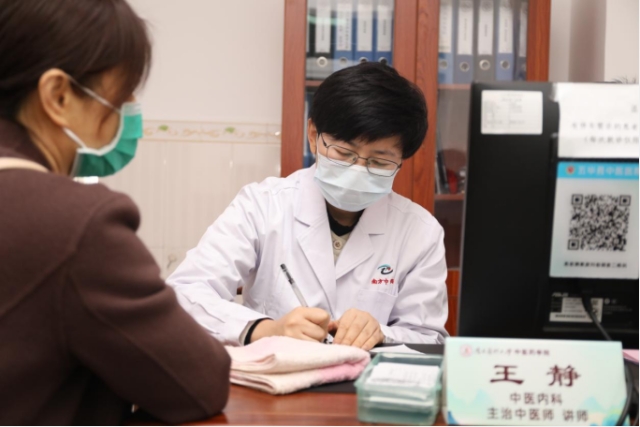 一位中年妇女走进了中医内科诊室,她自述失眠三四年,口干口涩时睡眠更不好,经常情绪低落。中医药学院中医内科学王静博士细心开导患者,给她开具中药处方,并将煎药注意事项细心地写在药袋上。
