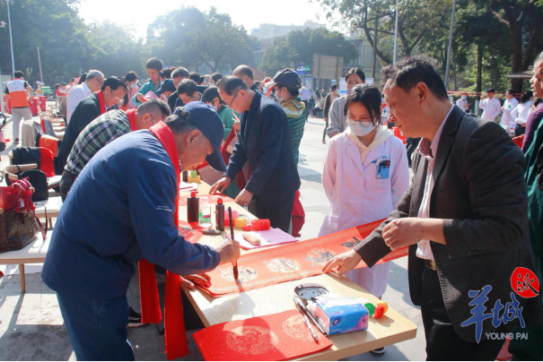 淡淡墨香,浓浓年味!1月16日,广东省潮联书画院联合南方医科大学中西医结合医院开展“迎新春送春联送健康”义诊活动,广东省潮联书画院廖宗怡、陈春盛、陈俊生、辜慧龙、许芝基、陈小敏、刘佐光、林潮和、郑友深等10名书画家现场送春联赠福字,挥毫泼墨为街坊送祝福。现场还设置有专家义诊、咨询服务,拉近文化、医务工作者与群众、患者的距离。