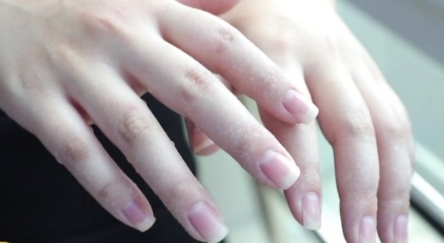 街坊阿婷:读小学一年级的时候老师让我上黑板写字,一边写手一边滴汗,老师还以为我上课跑出去玩水。每次写作业的时候,我都要撕作业本的纸折起来垫着,这样不会弄湿作业本。