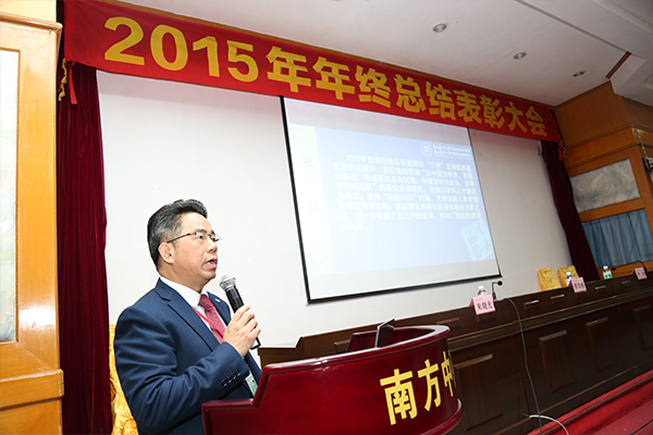 1月29日下午,南方医科大学中西医结合医院(南方医科大学肿瘤中心)在学术会议厅举行了2015年年终总结表彰暨2016年工作部署动员大会。会议由严冬书记主持,罗荣城院长代表医院班子作2015年工作总结暨2016年主要工作的报告。全体院领导、科室正副主任、护士长及机关人员参加会议。