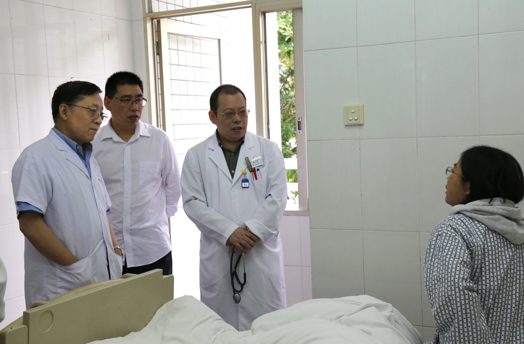 李爱民教授等现场了解横荷社区卫生服务中心一名住院病人情况
