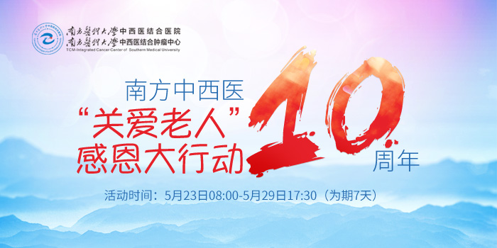 为庆祝南方医科大学中西医结合医院建院10周年,医院将于5月23日-29日举办为期一周的“关爱老人”感恩大行动。活动期间,55岁以上的老人到医院就医将获得免门诊挂号费、免部分住院检查检验费以及健康查体享受8折等三重优惠。