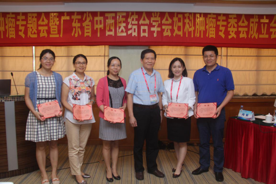 大会上,金世明秘书长宣布妇科肿瘤专业委员会正式成立,并宣读了该专委会的组成成员名单。妇瘤专委会顾问是国内著名的妇科肿瘤专家刘继红教授、林仲秋教授、姚书忠教授。同时正式任命南方医科大学中西医结合医院妇科、妇瘤科主任冯忻教授为第一届专业委员会主任委员,中山大学附属三院李小毛教授、佛山市第一人民医院王刚教授、广东省人民医院刘木彪教授、汕头大学肿瘤医院李从铸教授、广州医科大学附属肿瘤医院赵营教授、广东省第二中医院陈小平教授为副主任委员。林培政副会长为新任正、副主委颁发了聘书。