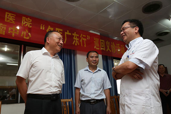 韶关市委常委、市委组织部长华旭初(左一)到“名医广东行”韶关站现场指导工作