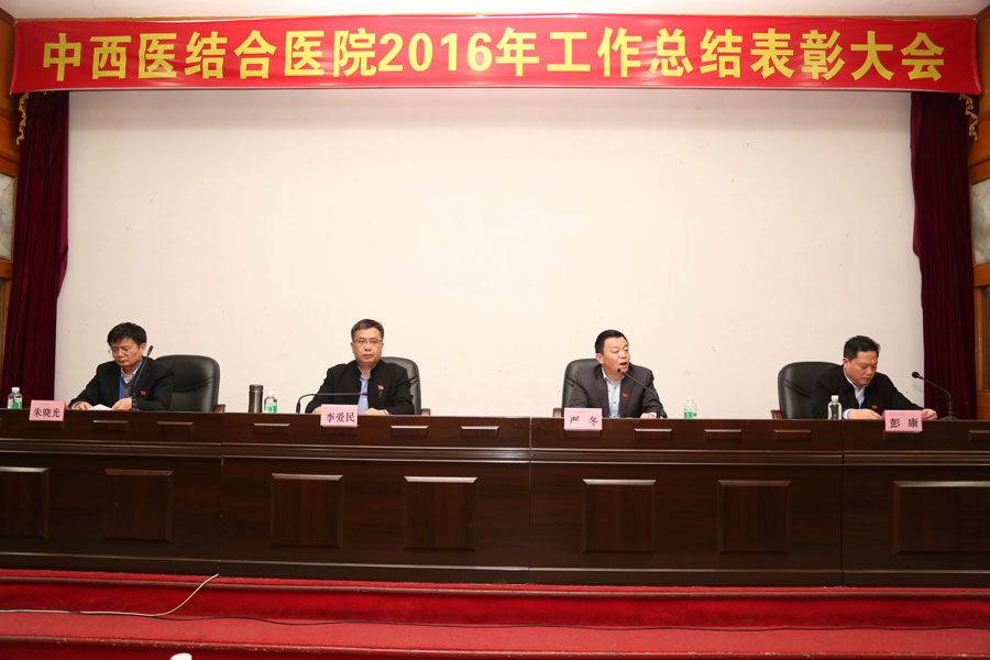 会上,李爱民副院长代表医院班子向大会作了2016年度工作总结,他主要从医疗业务、学科队伍建设、科技创新、平台建设、思想文化、品牌拓展等方面回顾了2016年重点工作及成效,客观剖析了存在不足及原因。在部署新年工作时,他强调2017年是中西医结合医院实现快速发展的关键年,医院将全面贯彻落实“十八大”精神和深化医药卫生体制改革的要求,在学校党委和省中医药局的正确领导下,贯彻落实国家创新驱动发展战略,切实践行“广集民智、凝心聚力、艰苦奋斗、创新发展”的医院精神,秉承“博采中西,厚德精医”的办院宗旨,立足于服务病患,以提升内涵建设为抓手,努力提高医疗服务质量,突出中医药特色和肿瘤学科龙头作用,狠抓“三项目标任务”、努力完成 “十项重点工作”,为实现院党委确定的“一年一小变,三年一大变”的工作目标打下坚实基础。他殷切期望,全院干部职工要按照“严管理、突特色、树品牌”的总体思路,充分发扬主人翁精神,齐心协力、开拓创新、奋勇前行,为“办中国最好的中西医结合医院和中西医结合肿瘤中心”的发展目标而努力奋斗。