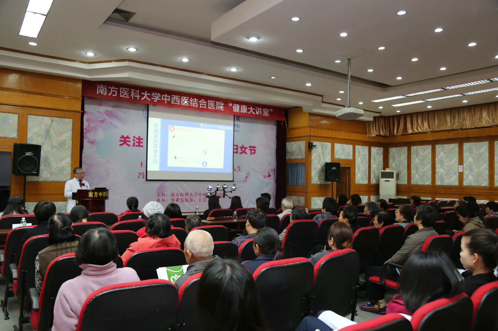 同时,为感谢长期以来关注和支持医院的社区人员,医院工会联合事业发展部于3月7日上午开展了“关注‘半边天’,健康妇女节”专题公益活动,王远东教授和冯忻教授为《健康大讲堂》现场听众科普乳腺及妇科疾病防治知识,同时邀请陈国奋教授、金国萍教授为听众义诊,并送出了精美小礼品、免费骨密度检测及30份888元的健康体检大礼包,4位专家共为100余名听众送健康,受听众一致好评。