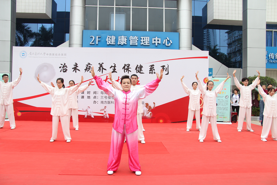 为大力弘扬中医传统文化,推动国粹事业的发展,促进全民养生意识,4月7日下午,南方医科大学中西医结合医院工会联合事业发展部、宣传科等多个部门共同开展的治未病养生保健系列活动之太极班正式免费开课,曾多次获得国际大赛金牌的杨式太极拳第七代传人张恢琳老师受聘担任教练,近300名观众慕名参加活动,并参与互动。