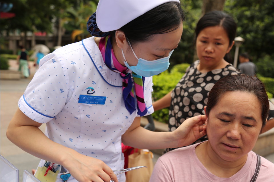 活动一开始,就迎来了市民们的热心问询。中医护理专科小组成员为居民们免费提供了艾灸、耳穴贴压、穴位按摩等中医护理特色技术,并向广大居民们普及了预防保健知识和健康生活理念,受到了广大居民的欢迎。