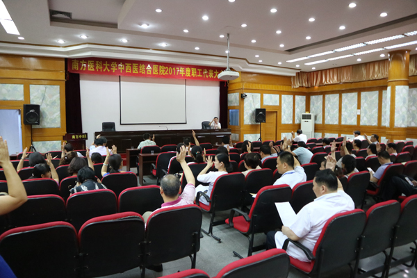 6月8日下午,我院在学术会议厅召开职工代表大会,全体院领导及医院正式代表共51人出席了会议。医院工会主席彭康主持会议。