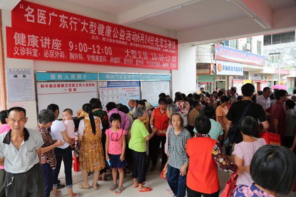 6月23日、24日,由南方医科大学中西医结合医院、南方报业传媒集团共同举办的“名医广东行”大型健康公益活动走进河源市源城区、和平县古寨镇。南方医科大学中西医结合医院12名专家连续2天举行3场大型义诊和1场健康科普讲座,把健康送到基层、送到百姓家门口。