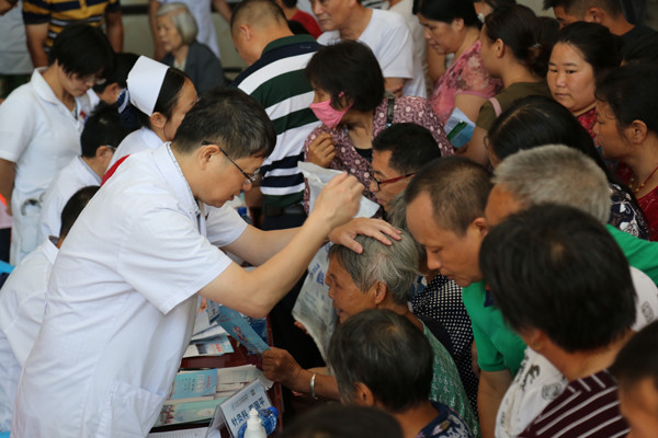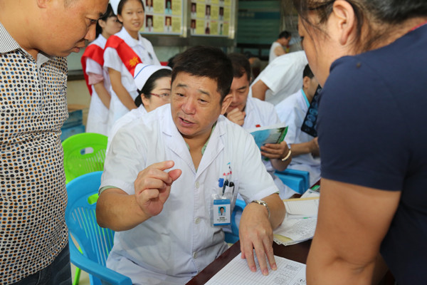 今年,一场历史罕见的洪涝灾害造成湖南省14个市州120个县市区受灾。为提高老百姓灾后疾病防控意识,7月21-23日南方医科大学中西医结合医院院长、南方医科大学中西医结合肿瘤中心副主任李爱民教授带领医院针推康复科、风湿病科、肿瘤科、肝病科、呼吸科、治未病科、骨伤科等重点、特色科室共8名专家赴湖南邵阳、新邵、新宁开展了4场大型义诊活动,免费为当地百姓提供健康咨询服务。