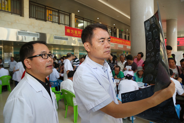 4场义诊活动联合了正大邵阳骨伤科医院、新邵县人民医院、邵阳市中西医结合医院、新宁县人民医院共同举行,专家们凭借丰富的临床经验,认真地、耐心地为前来就诊的群众检查身体、询问病情、阅片开方、传授保健知识。