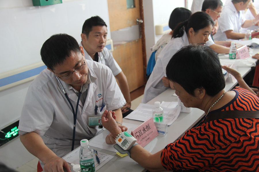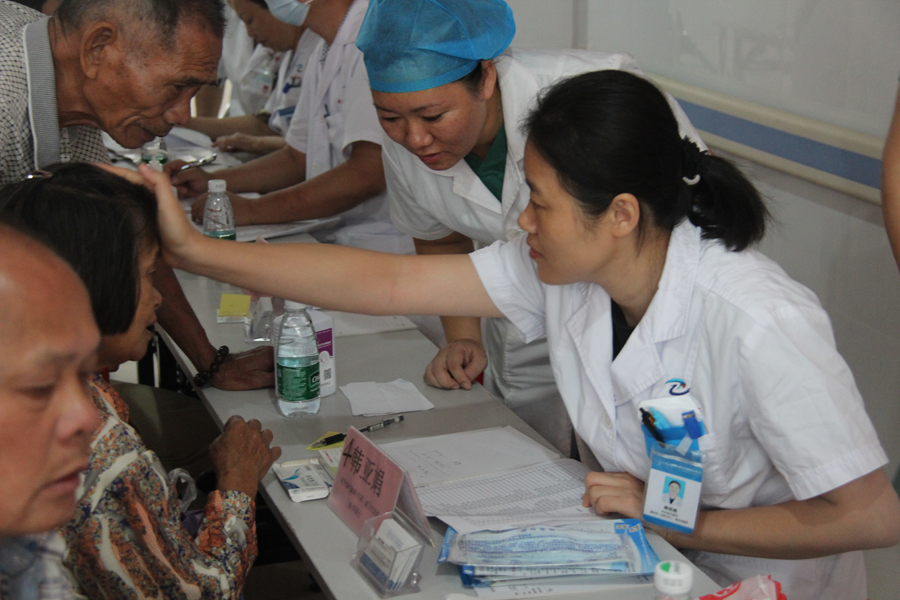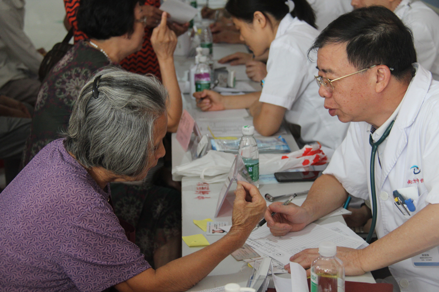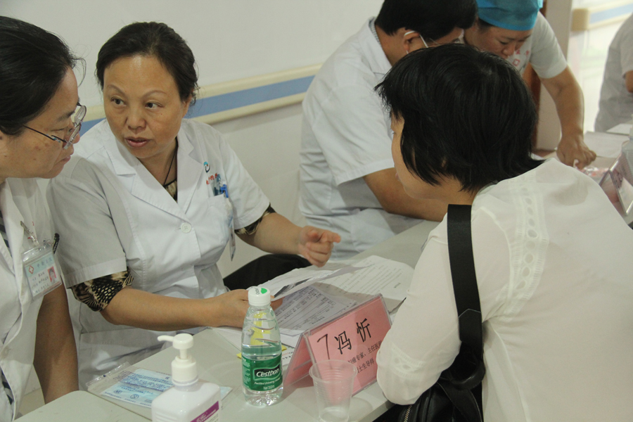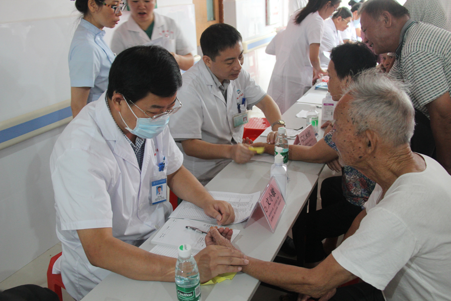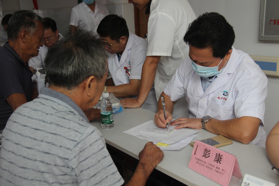 本次活动由南方中西医常务副书记彭康教授带队,医院中医科、胸外科、脑病科、心血管病科、脾胃病科、腹外科、妇科、内分泌代谢科等共派出8名专家免费为近150人次市民提供健康服务,义诊现场火爆,专家们应接不暇,时近12点,专家诊桌前还围着患者问诊。住新围村的陈先生说:“母亲患脑梗多年,治疗效果不理想,听说陈俊抛主任过来义诊,专门关了店铺门带她过来看看”。