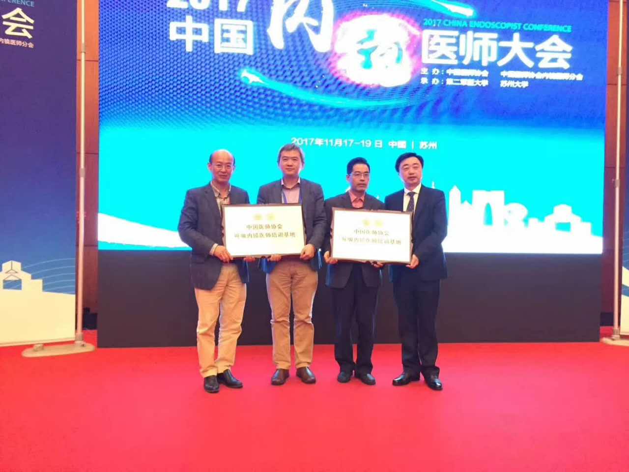 11月18日,2017年中国内镜医师大会在苏州召开。会上,南方医科大学中西医结合医院呼吸科/胸部肿瘤科被中国医师协会评为全国首批呼吸医师内镜培训基地。科主任冯起校出席会议并参加授牌仪式。据悉,全国有41家医院被批准成为呼吸内镜医师培训基地,中医院类医院全国仅我院1家。