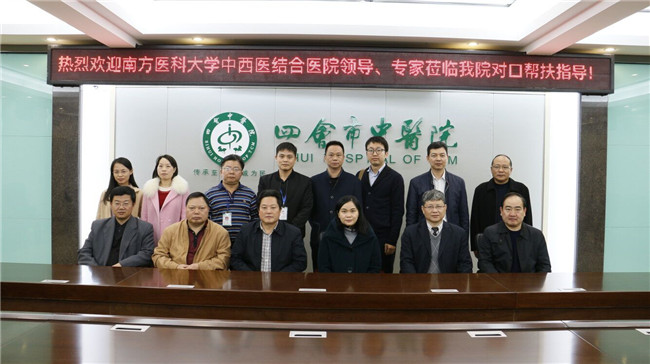 为深入贯彻执行《广东省卫生计生委广东省中医药局关于启动城市三甲公立医院优秀卫生技术人才下基层项目的通知》(粤卫函﹝2017﹞1370号)精神,1月17日,我院彭康常务副书记和朱晓光副院长分别带领帮扶人员到四会市中医院和梅州市梅县区中医医院对接对口支援工作,受到对口支援医院的热烈欢迎,同时对我院给予人才和技术的大力支持表示由衷感谢。通过前期交流沟通,我院选派肝病科陈逢生副主任、麻醉科陈恒星副主任医师到四会市中医院帮扶,选派肿瘤科陈润主治中医师和预防保健科卢木逢中医师到梅县区中医医院对口支援。