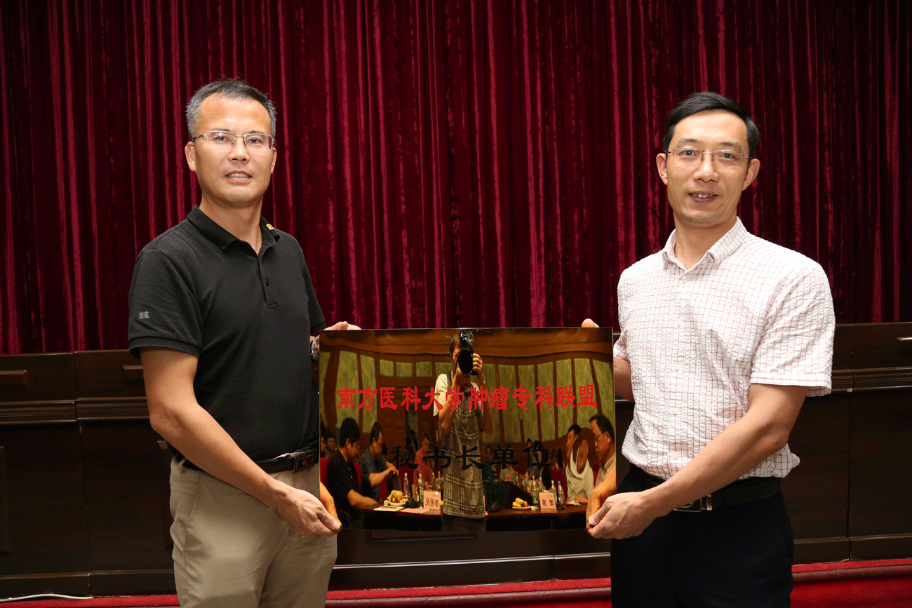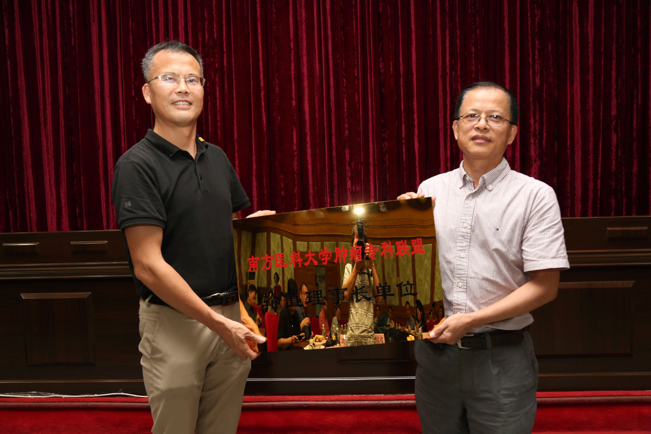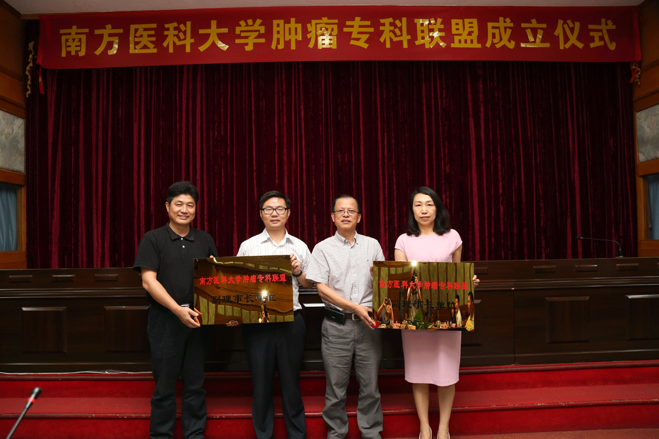 会上,张玉润副校长对南方医科大学肿瘤专科联盟的成立表示祝贺,并与轮值理事长单位汪森明、候任理事长单位廖旺军分别为专科联盟的成员单位南方医院、珠江医院、第三附属医院、中西医结合医院、第五附属医院、深圳医院、皮肤病医院、顺德医院、南海医院、口腔医院进行授牌。张副校长强调,南方医科大学肿瘤专科联盟的成立是为进一步推进医改,贯彻落实《国务院办公厅关于推进医疗联合体建设和发展的指导意见》的具体举措,肿瘤专科联盟要大力探索大南医系统医院间肿瘤专科交流、合作共建的创新模式,促进大南医系统肿瘤专科整体医疗、教学、科研水平的提升,创建大南医一流肿瘤专科品牌。