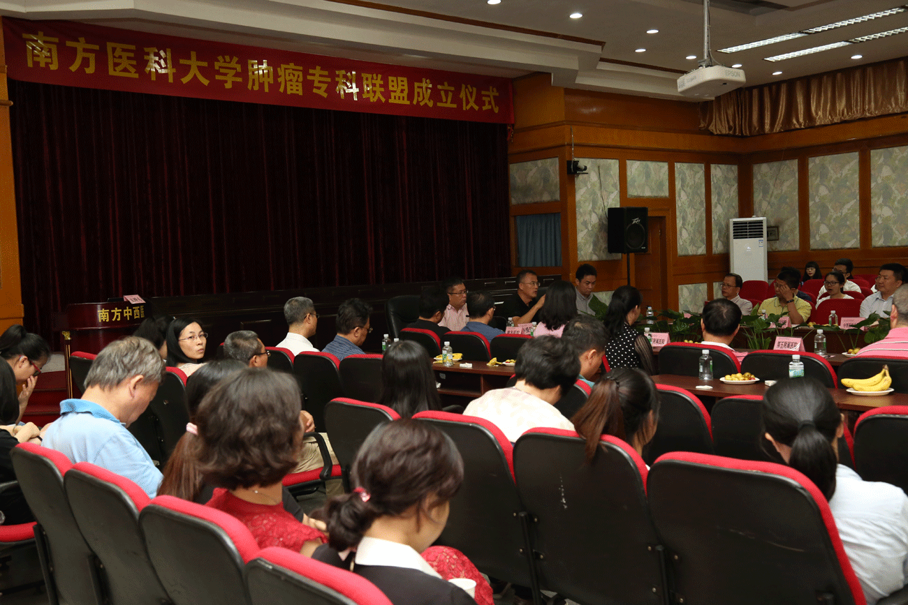 7月7日,南方医科大学肿瘤专科联盟成立仪式在南方医科大学中西医结合医院举行,学校10所附属医院成员单位的院领导、科主任、专家共120余人参加签约仪式。大学张玉润副校长出席会场,并做重要讲话。