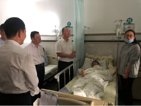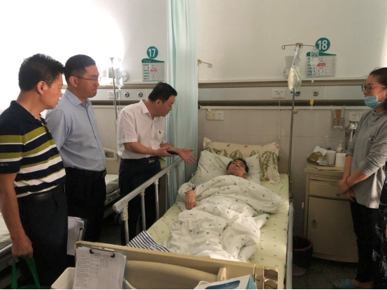 省精神文明办吴祖清副主任、刘海斌副主任等一行到中西医结合医院看望贺主任,将30000元“广东好人基金”送到贺主任手上
