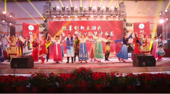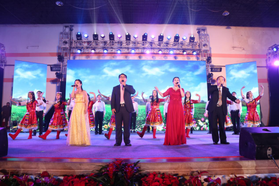 晚会尾声,院领导和演员代表齐唱《歌唱祖国》,唱出了中西医人对祖国、对医院对新春的祝福,将晚会推向最高潮,同时,也激励着每一位中西医人站在2019年新时代新起点上,同心同德共筑中西医梦。第六届石榴花开迎新文艺晚会完美落幕。